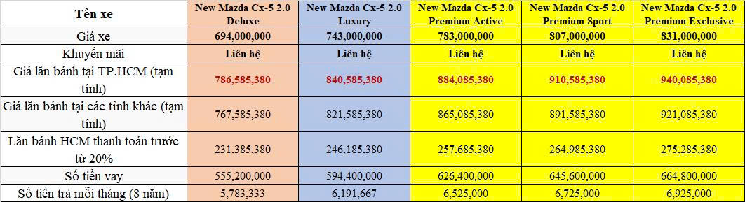 GIÁ XE MAZDA CX-5 CÁC PHIÊN BẢN tháng 11/2025